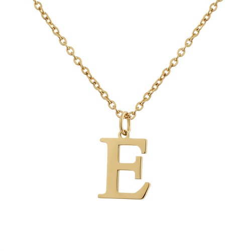 Piękny wisiorek Literka E z pozłoconej stali chirurgicznej 316L. Biżuteria jest idealnie powtarzalna, gdyż jest wycięta laserem a następnie ręcznie polerowana. Perfekcyjna powierzchnia została chemicznie oczyszczona i pokryta elektrolitycznie trzema warstwami złota. Zastosowana technologia pozwala na udzielenie 5 lat gwarancji na utrzymanie powłoki galwanicznej.