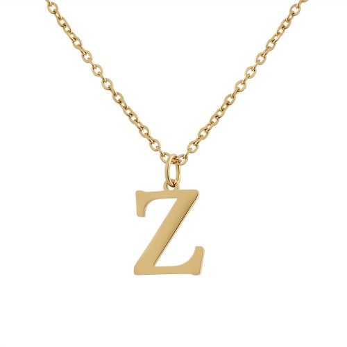 Piękny wisiorek Literka Z z pozłoconej stali chirurgicznej 316L. Biżuteria jest idealnie powtarzalna, gdyż jest wycięta laserem a następnie ręcznie polerowana. Perfekcyjna powierzchnia została chemicznie oczyszczona i pokryta elektrolitycznie trzema warstwami złota. Zastosowana technologia pozwala na udzielenie 5 lat gwarancji na utrzymanie powłoki galwanicznej.